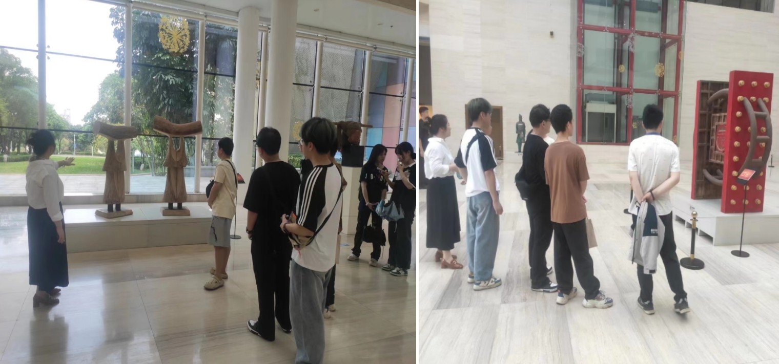 第三站考察广西艺术学院著名雕塑家何镇海教授的雕塑艺术工作室,让学生领略艺术家工作室的艺术氛围与风采,对名家雕塑作品的欣赏,并加深学习与探讨。何教授给同学们分享了自己的“门窗”传统艺术符号再创作的个人艺术创作了历程,为同学们拓宽艺术创作的思路,及寻找个人艺术风格及语言的重要性。本次艺术之旅同时也划上圆满的句号。(欧安佳 摄)