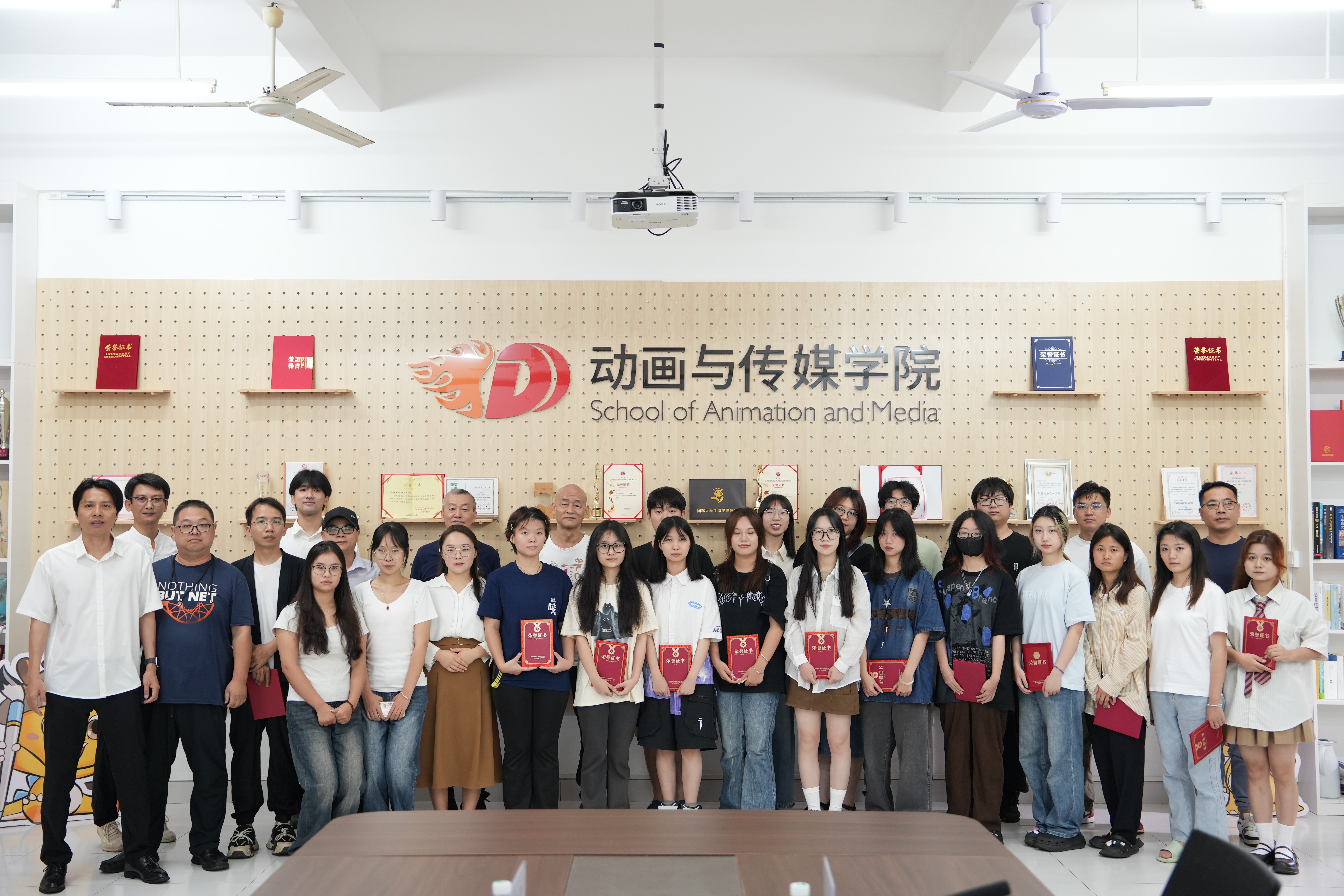 为加强学院文化建设,丰富和拓展学院文化内涵。经过3个月的精心筹备和激烈角逐,6月6日上午,动画与传媒学院第六届“鲸鱼杯”角色创意设计大赛迎来了颁奖仪式。动画与传媒学院张帆书记、动画专业带头人王钢教授、资深教授廖大勇学院副院长杜博、刘涛、李宗毅以及30名师生参加了此次颁奖仪式。