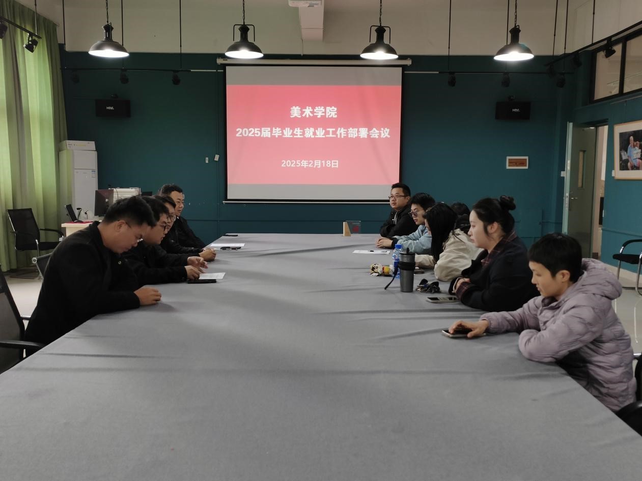 218日,美术学院就业会议于艺术楼313召开。本次会议由美术学院学工办副主任杨凯主持,议题关于2025届毕业生就业工作部署,执行院长龚为、书记韩玮、副书记鲁明阳、副院长殷声、学工办主任林昌华以及各21级班主任参加会议。