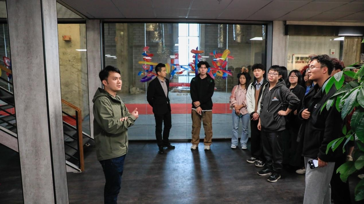 随后,考察团一行前往南宁四叶草动画公司。通过参观项目展示区和工作坊,学生们对动画产业的多元化运作模式有了更为直观和深刻的认识。孙永辉院长在考察期间多次强调,校企合作是推动动画教育与实践紧密结合的重要途径。他提出,学院需不断创新合作模式,与企业共同构建人才培养体系,确保教育内容与行业需求无缝对接,从而提升学生的就业竞争力,实现学校、企业、学生的三方共赢。企业代表也表示,将深化校企双方的合作、共建实习实训基地、开展联合创新项目,进一步拓宽合作领域,为学生提供更多实战机会和高质量就业岗位。