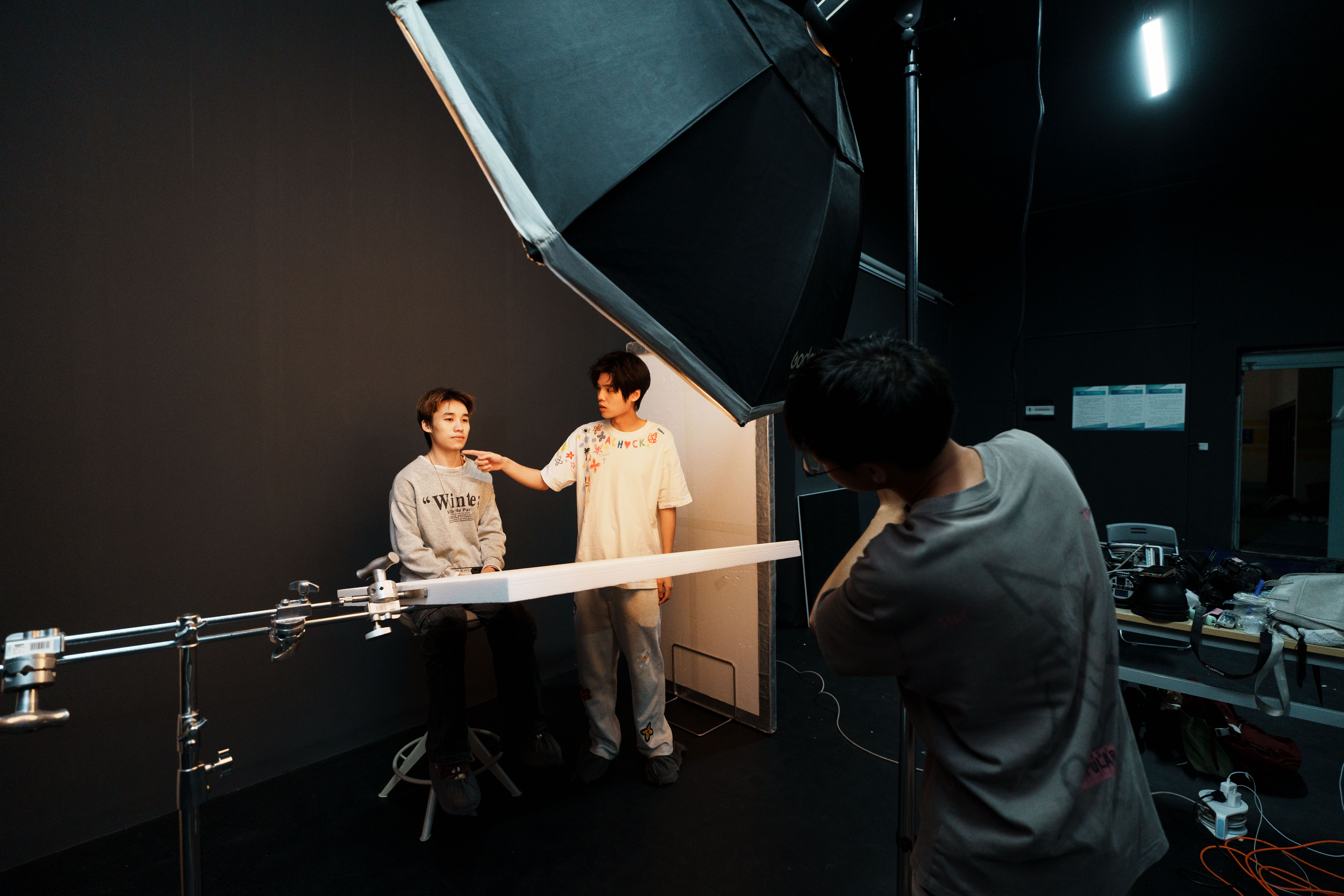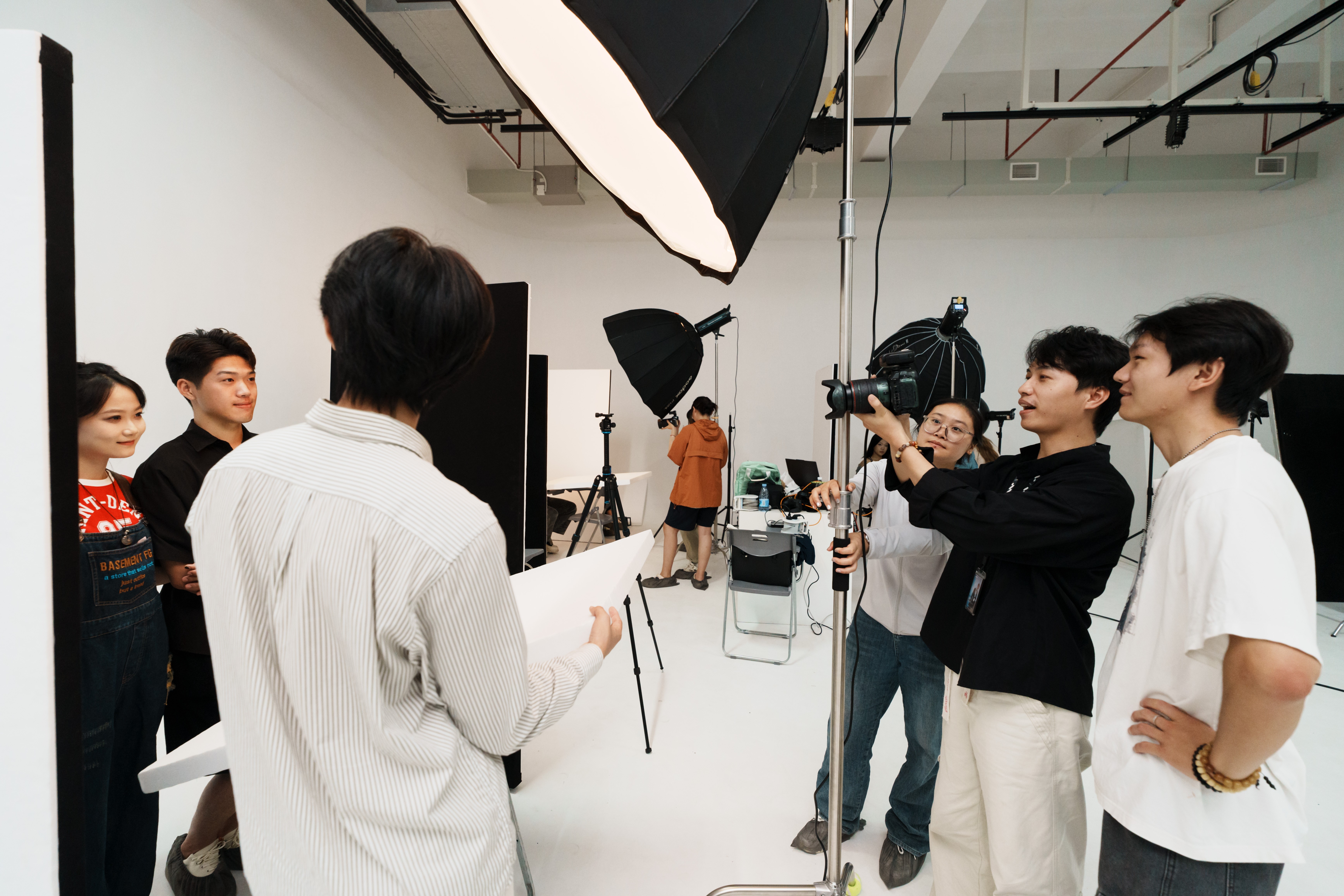 学生分组拍摄过程