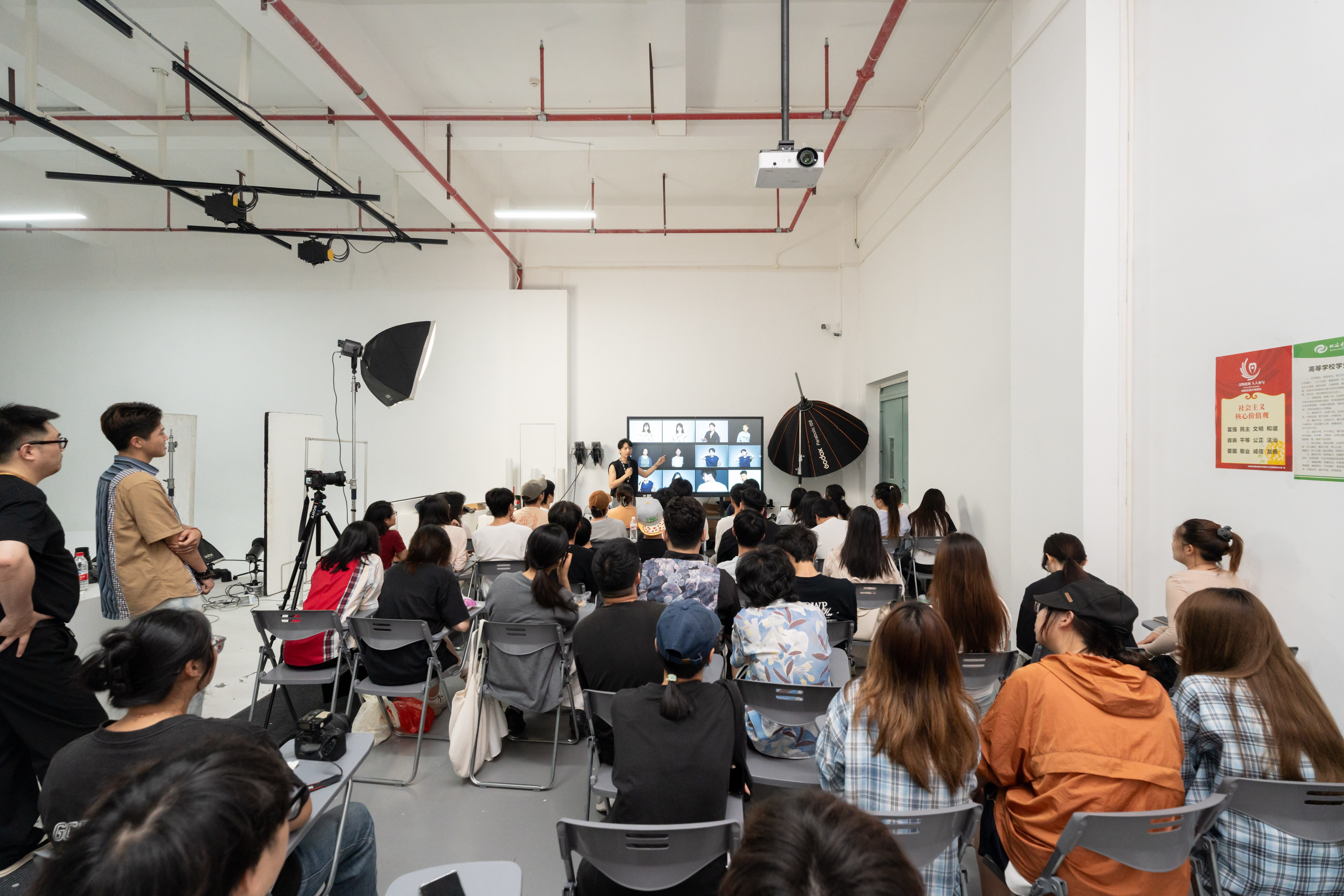 美术学院摄影专业2022级全体46名学生全员全程参与本次培训。海马体集团校企合作负责人徐贤城在开班仪式上系统介绍了企业的发展历程、品牌理念与企业文化,并着重介绍了创新构建的全职与兼职并行的双轨实习体系。