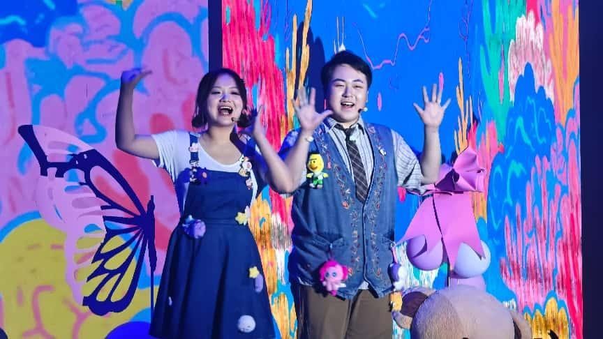 “声织星河・万象共情” 篇章情系当下,展望未来。模拟直播《买买买北艺直播间》紧跟时代潮流,同学们化身 “带货主播”,妙语连珠、互动感十足,生动展现新媒体语境下的传播新形态;朗诵《骑自行车的中国人》以质朴深情的声音,描绘平凡生活中的时代画卷,引发强烈共鸣;压轴的情景歌舞《声叙流年》将三年求学点滴融入歌声与表演,在温馨感人的氛围中诉说同窗情、师生谊和对未来的憧憬。