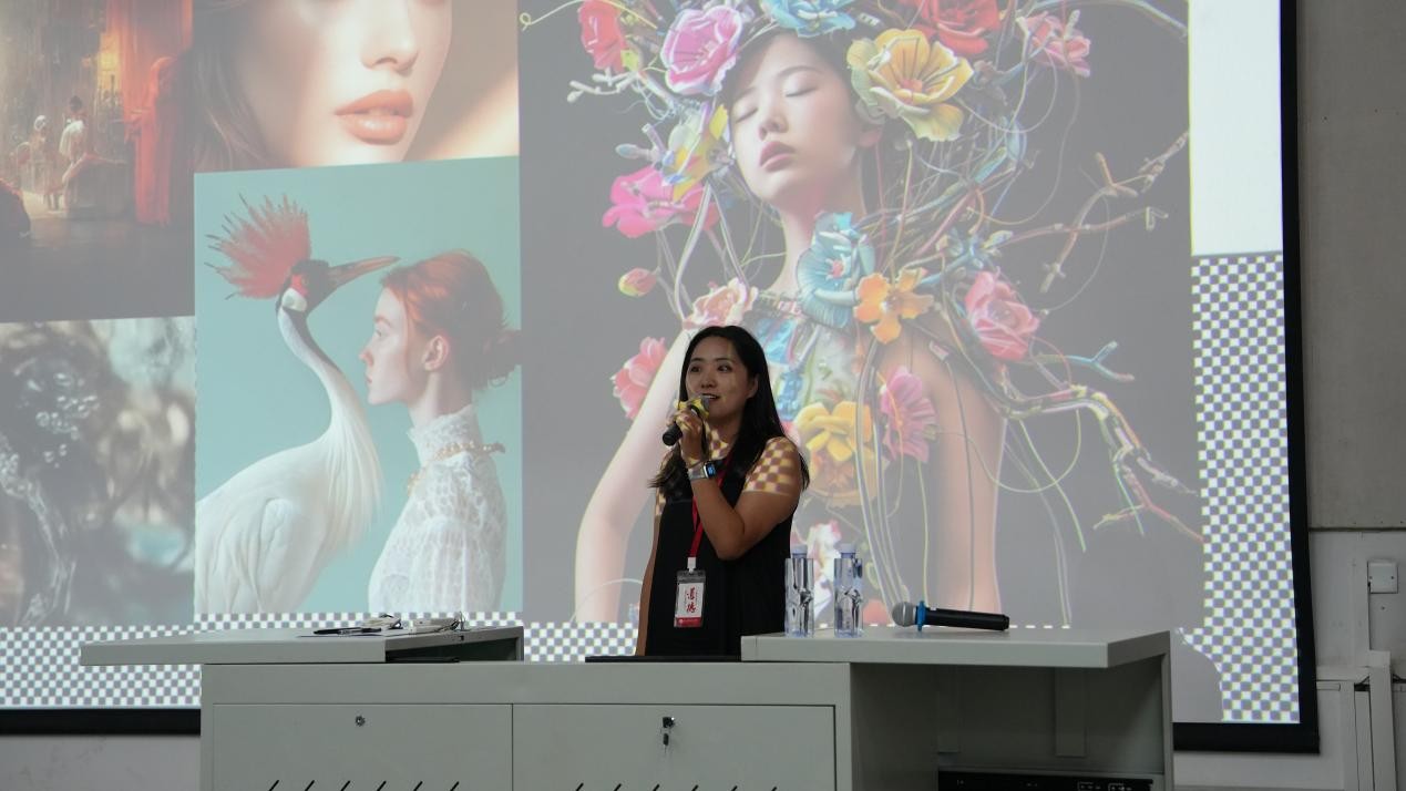 随后,艺术与科技教研室副主任王艺霖为新生们带来了详实而精彩的专业解读。她系统阐述了该专业“艺术与科技深度融合、创新与应用双轮驱动”的育人理念,并重点介绍了以“项目引领、模块化进阶”为特色的课程体系。王艺霖副主任指出,专业课程设置遵循学生成长规律,分为“基础认知-核心探索-高阶整合-毕业创新”四个递进阶段。整个培养过程贯穿以行业真实需求为导向的项目制教学,确保学习内容与产业前沿同步。