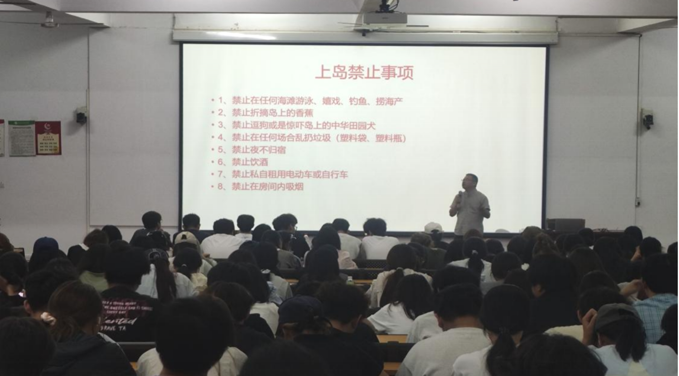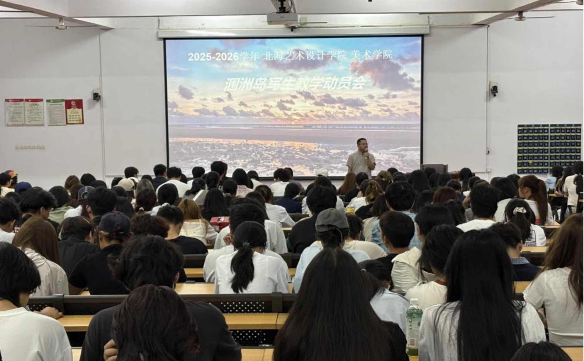 动员会讲解了涠洲岛写生事宜,包括行程安排、岛屿概况、安全规范及教学任务等内容龚院长着重强调了安全规范及教学任务两方面。学生应爱护岛上动植物,禁止如下海游泳私自捕捞海产危险行为住宿点和景点注意文明礼貌;在完成色彩风景写生、速写及实习报告等学习任务的同时,鼓励学生参加手机摄影大赛丰富学习体验,提升综合素质。最后赏析了一些展现涠洲岛风光的名家画作及往年优秀学生作品,至此,动员会圆满结束。(林昌华 马圣翔  摄)