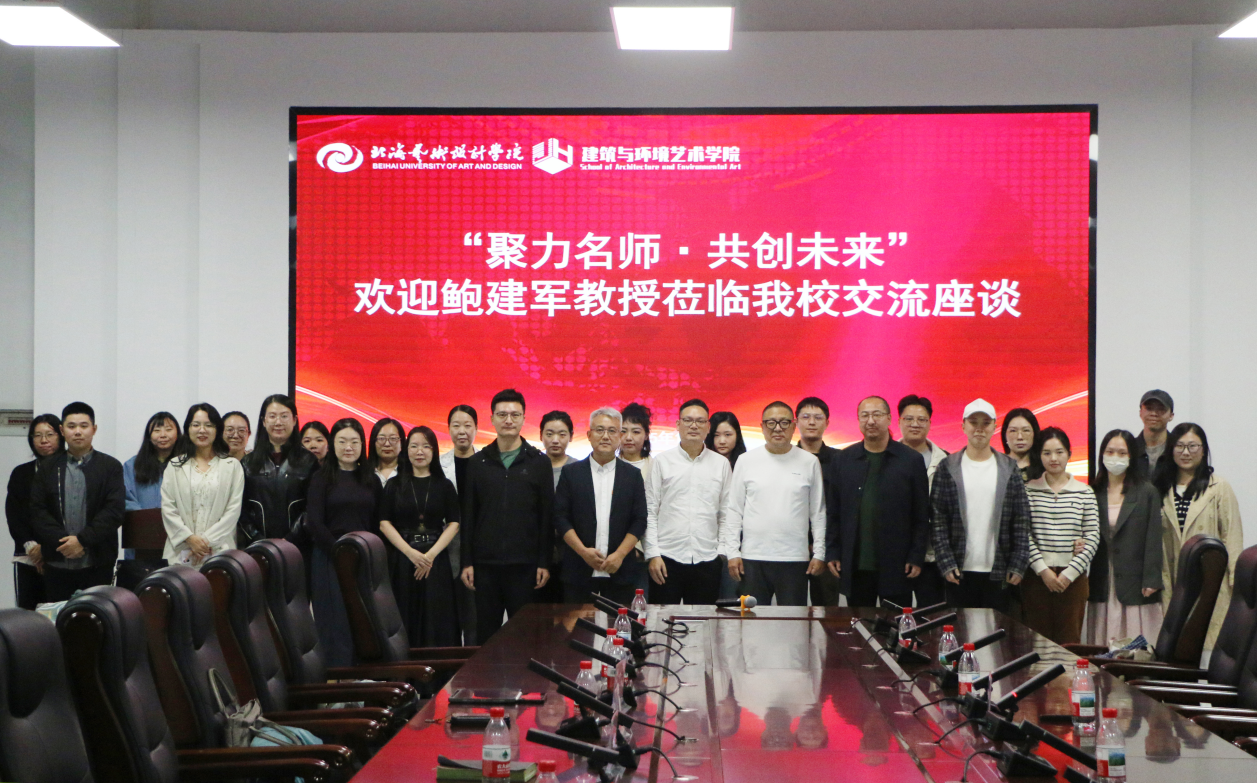 为助力青年教师提升专业素养,拓宽照明设计领域视野,我院于2025年10月23日15:30在艺德楼802会议室开展了“聚力名师・共创未来——鲍建军教授与青年教师座谈会”。建筑与环境艺术学院党总支书记庞定坤、院长张春东、副院长蔡世伟、张乐平,以及青年教师代表共同参会,聆听行业大咖的分享,汲取专业智慧。本次会议由建筑与环境艺术学院院长张春东主持。