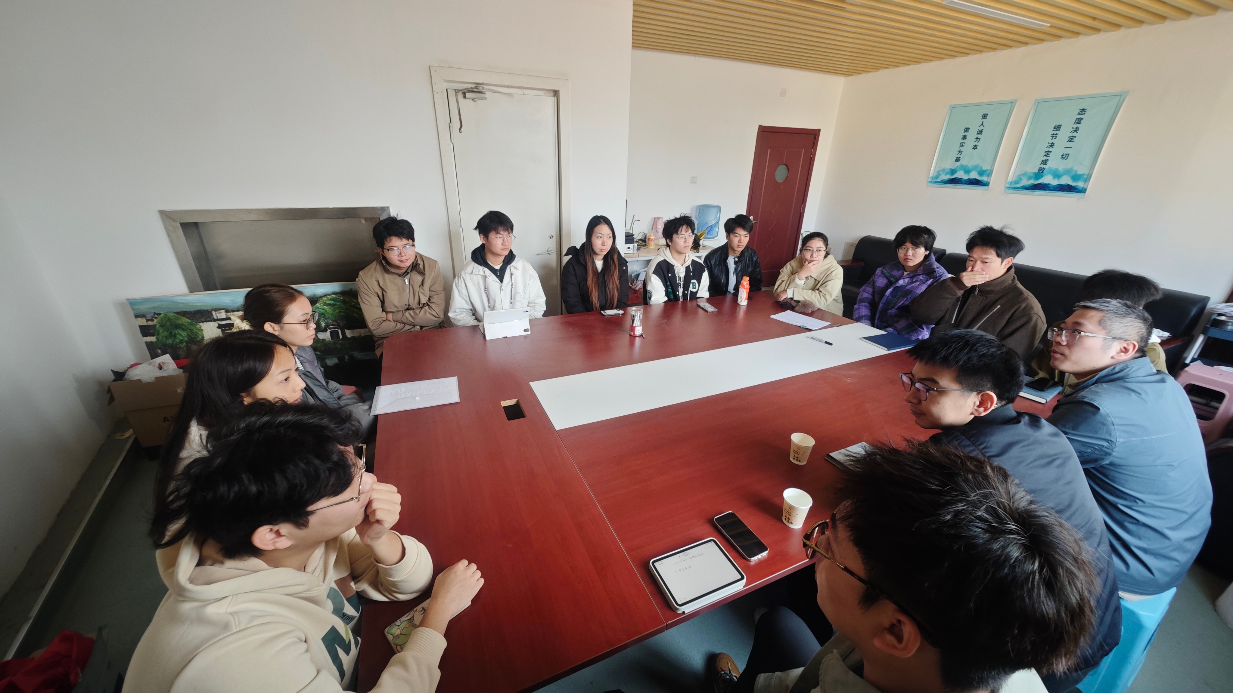 考察团首先抵达北京实践基地(宏福),在实地核查2022级学生授课环境与课堂氛围后,通过授课教师座谈、学生代表交流专题会议,全面掌握教学与实习实况。教师座谈环节,双方聚焦学生生活保障、毕业设计进度管控、跨校区课程衔接等核心议题深入研讨,学院领导结合调研情况明确后续教学节奏与毕业设计关键节点,为教学质量筑牢“防护网”。学生座谈会上,学生既认可企业项目专业对口的实战价值,也坦诚提及通勤、生活成本等实习压力。李高昱昊副院长全程认真倾听并传递学院关怀,鼓励大家充分利用首都优质资源提升竞争力,学院将持续做好后勤保障与学业支持,助力顺利毕业、实现高质量就业。