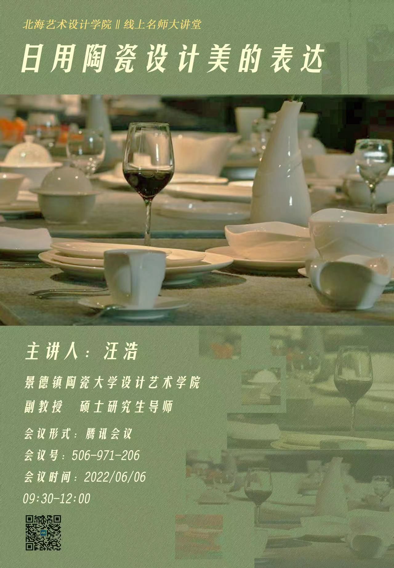 202266日上午,美术学院邀请景德镇陶瓷大学设计艺术学院副教授汪浩老师为全院师生开展了题为《日用陶瓷设计美的表达》的讲座,以线上、线下的形式同时进行。