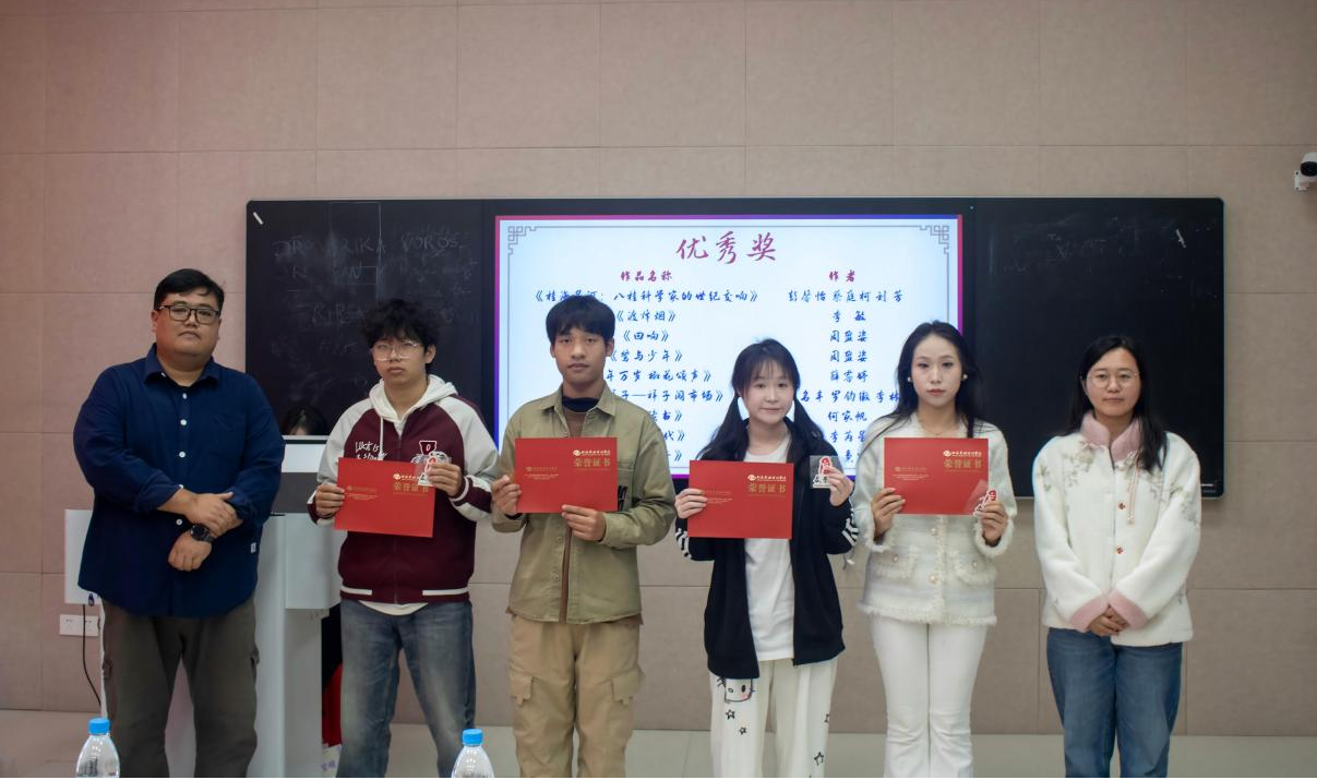 活动伊始,主持人详细阐释了本次剧本征集大赛的举办宗旨——以文字为媒搭建戏剧创作交流平台,挖掘校园戏剧创作新力量。随后,伴随着热烈的掌声,获奖名单正式揭晓,参会嘉宾和教师依次为获奖学子颁发荣誉证书。