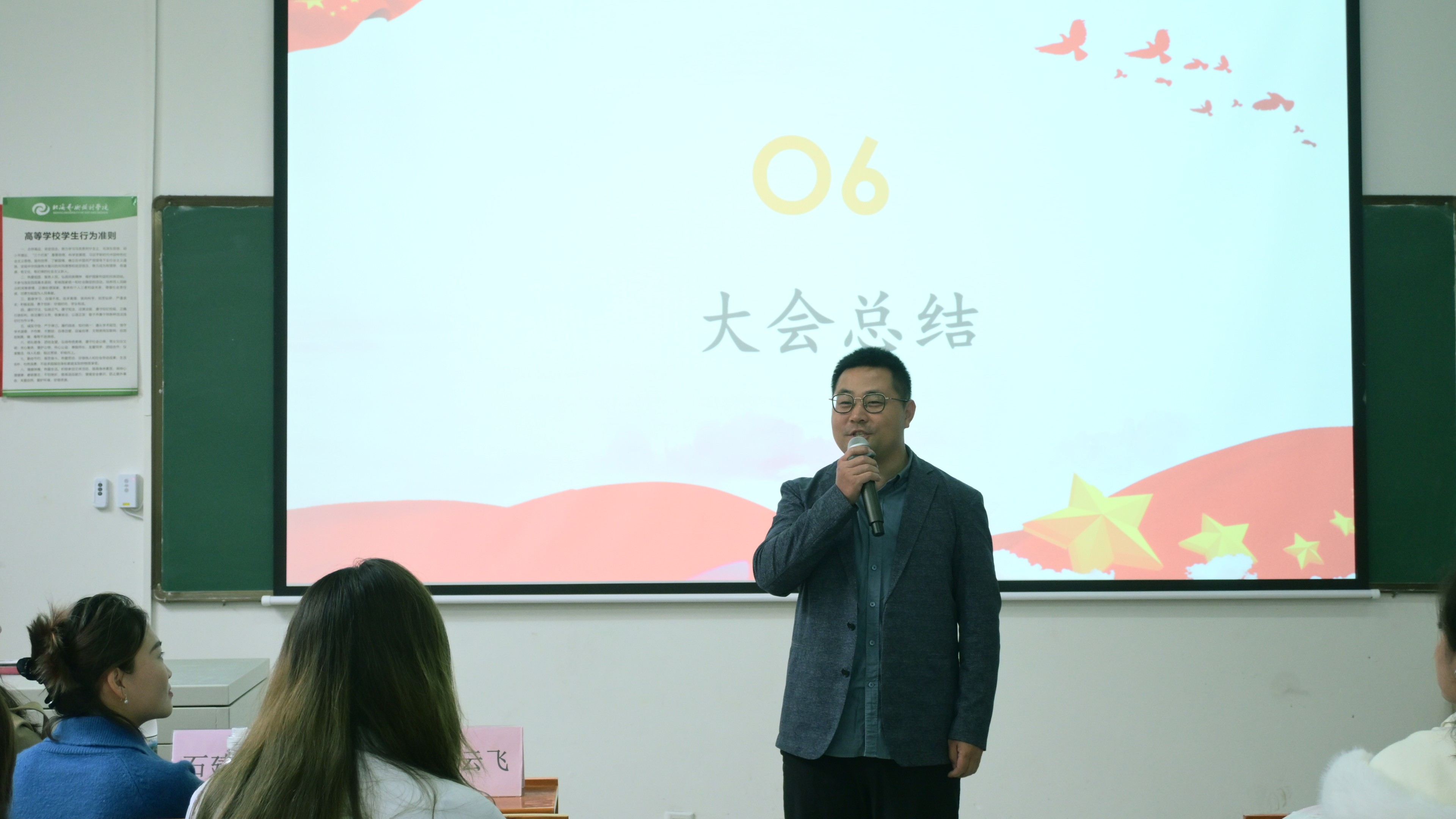 书法学院党支部副书记左云飞作总结讲话。他对各部门工作给予充分肯定,并结合当前形势寄语全体成员,希望大家以热爱与担当为笔墨,持续展现分团委的朝气与活力。