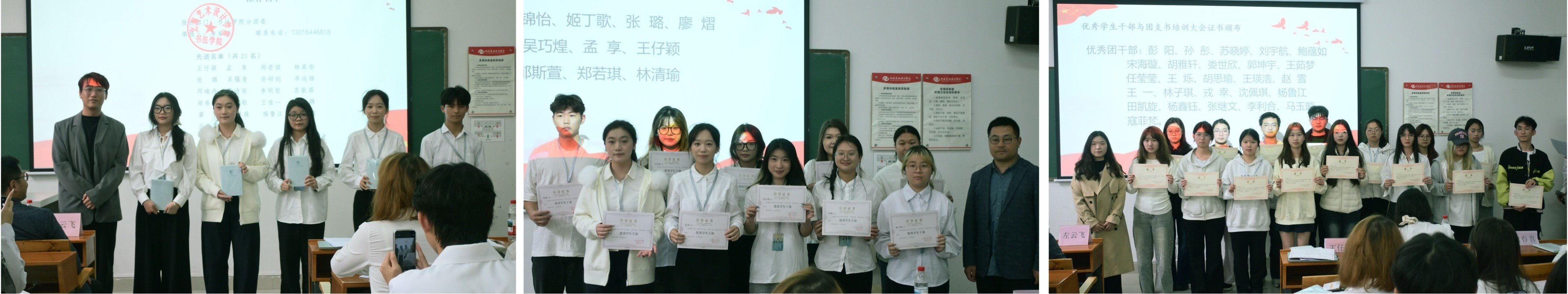 会议期间,分团委领导与指导教师为“先进个人”“优秀干部”“优秀团支书”颁发荣誉证书,勉励获奖同学再接再厉,发挥榜样作用,引领集体共同进步。