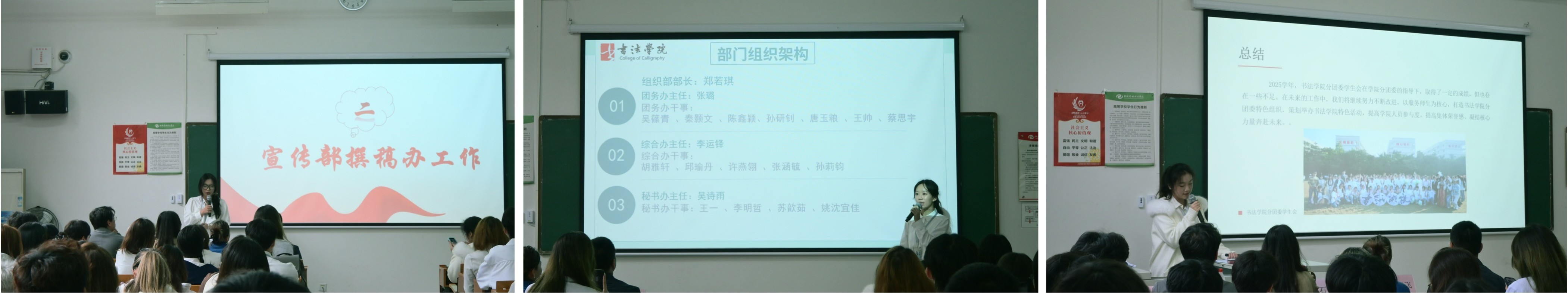 书法学院副院长兼分团委书记李家琪作开场致辞。他肯定了过去一年分团委的工作成绩,并对下一阶段工作提出展望,鼓励全体成员团结进取,共同推动分团委工作迈向新台阶。