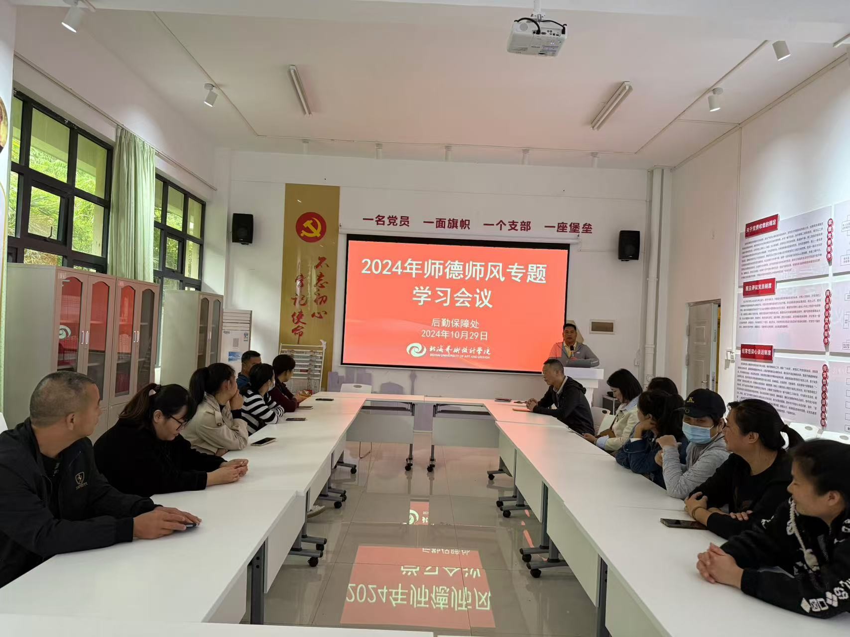 为进一步加强后勤人员师德师风建设,树立严格自律、爱岗敬业的良好形象。10月29日上午,后勤保障处召开了2024年师德师风专题学习会议,会议由后勤保障处处长黄世华主持,后勤保障处全体行政人员参加了会议。