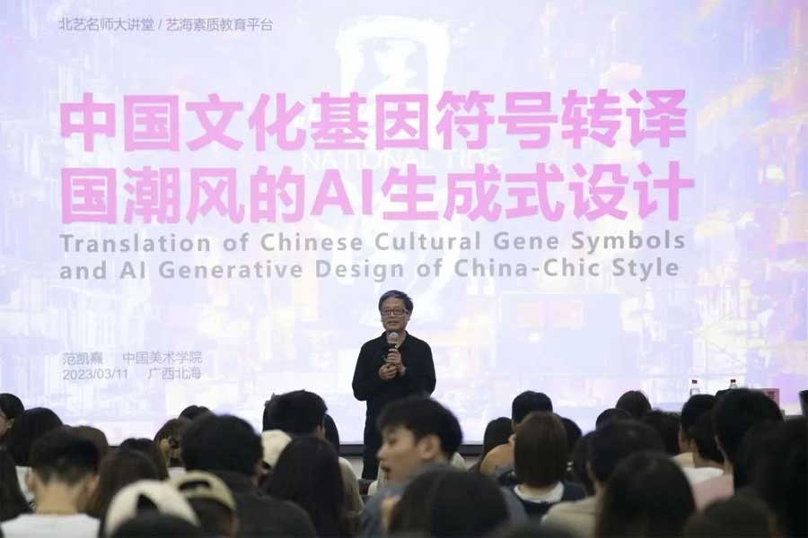 名师大讲堂ll中国美术学院范凯熹教授为我校开展讲座《中国文化基因符号转译与国潮风的AI生成式设计》