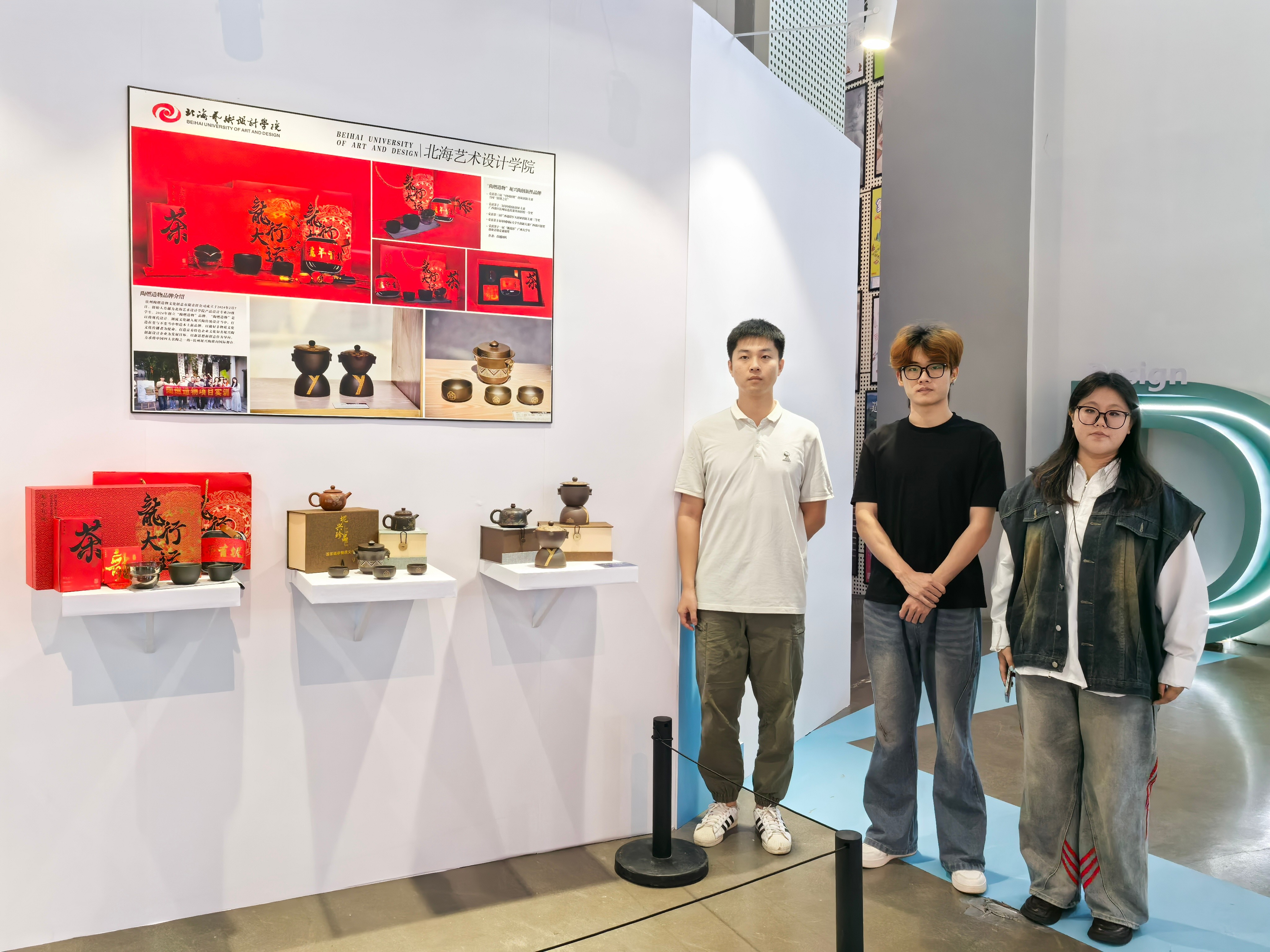 2024设计研究大会“院校汇展”在南京艺术学院美术馆开展,我校创新创业学院“陶燃造物—以现代潮流赋能坭兴陶传统设计”“重锤科技—全球将人工智能算法应用在声学软件领域的开创”多件大学生创新创业作品参与展览,相关作品得到参会人员和社会的好评。