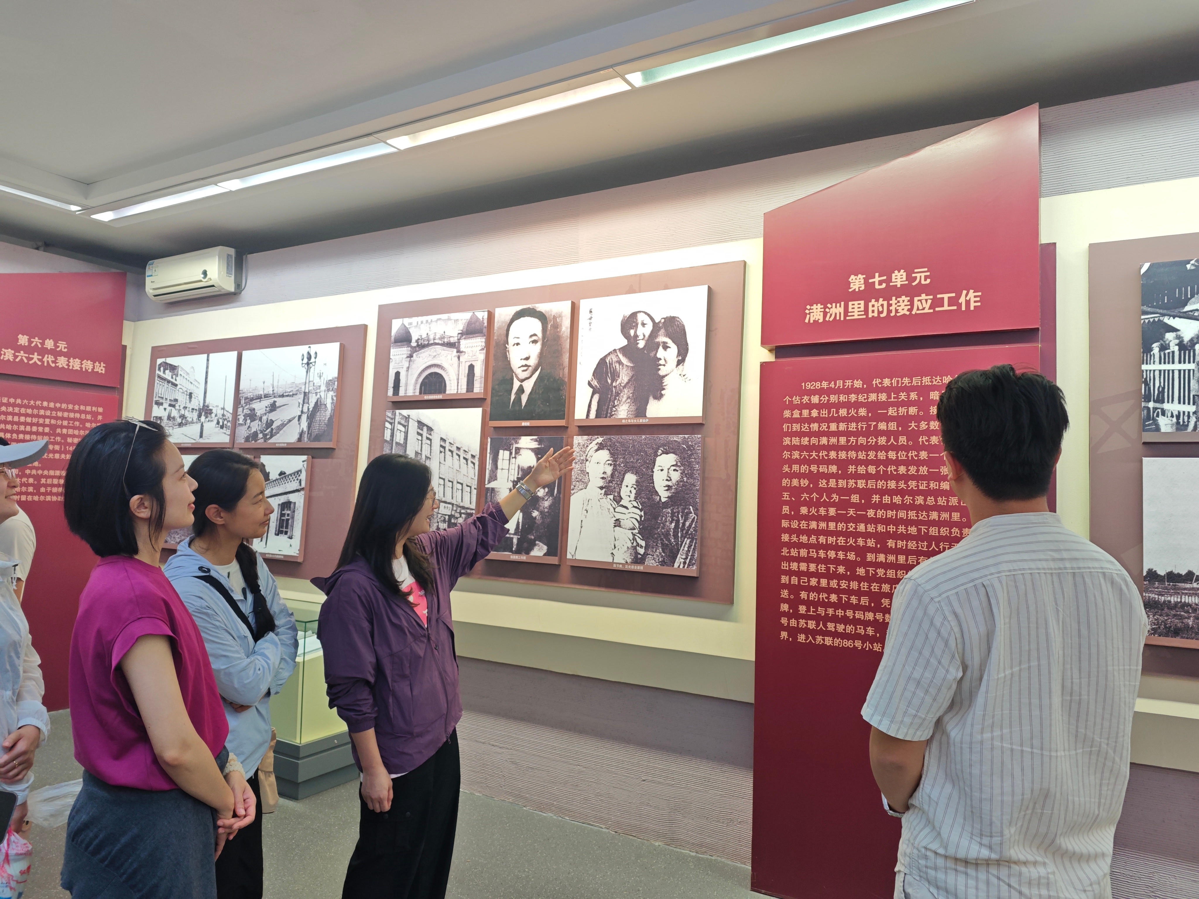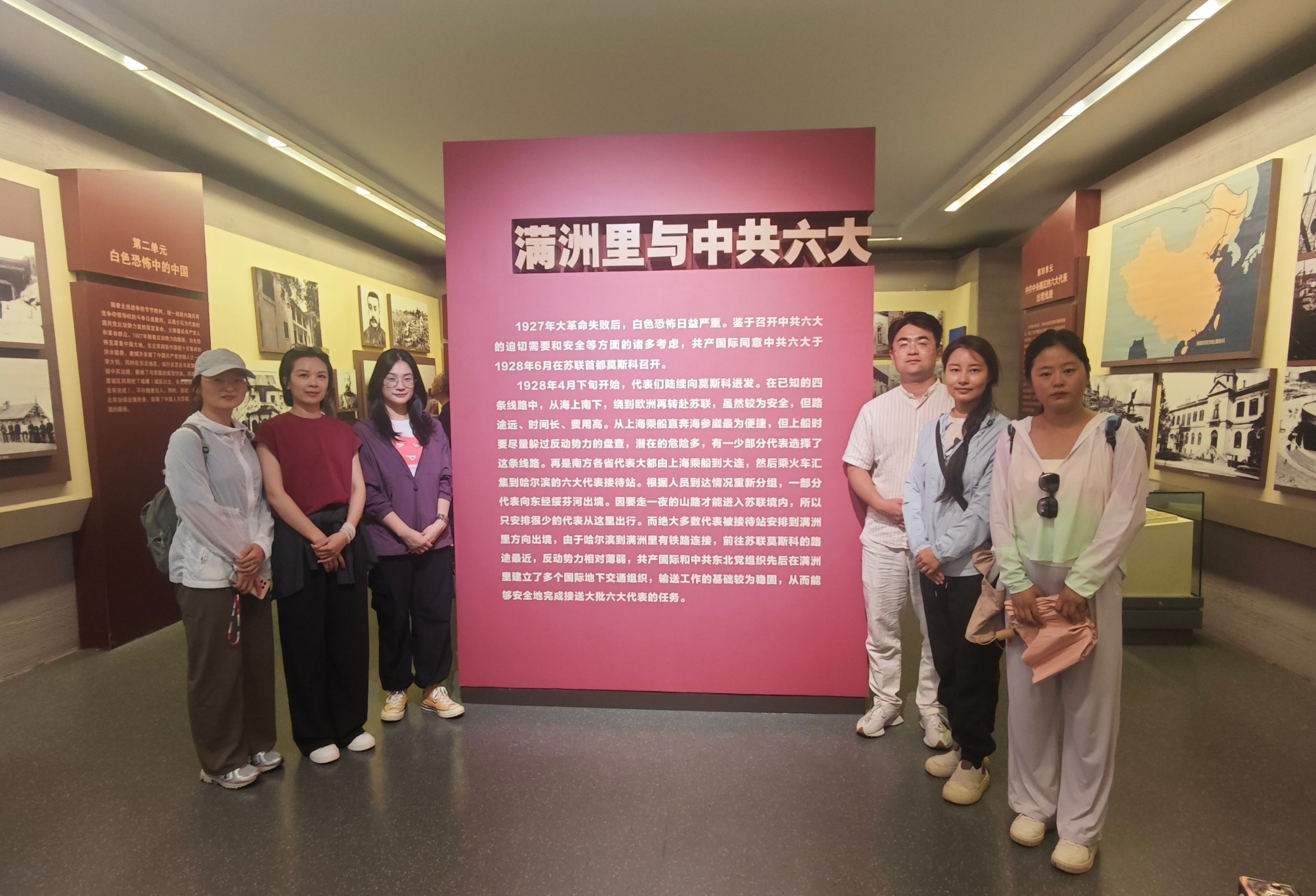 中共六大展览馆内,一件件展品无声诉说着那段艰苦卓绝的革命岁月。作为中国共产党唯一一次在境外召开的党的全国代表大会,中共六大在党的历史上具有重要意义,为中国革命指明了方向。教师们认真聆听革命先驱在复杂环境中坚持斗争、探索真理的事迹,深刻感悟他们 “为中国人民谋幸福,为中华民族谋复兴” 的初心使命。