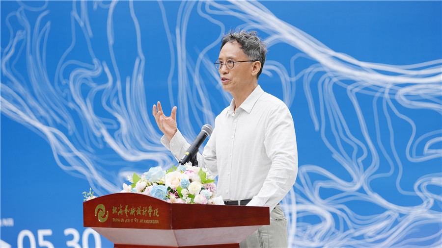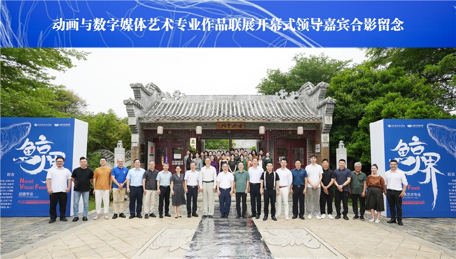 为丰富校园文化生活,深入推进校园精神文明建设,提升学生的艺术素养和创新能力,为师生搭建一个跨专业交流学习、展示才华的平台,5月29日下午,动画与传媒学院首届“鲸界”动画&数媒作品艺术联展在北海园博园北海园举行。学校董事长郑念贻,党委书记覃宪儒,校长卢新华,党委副书记陈毅华,副校长邱杰、包建明,总督学王斌等领导出席活动。教育部高等学校动画、数字媒体艺术专业教学指导委员会秘书长、全国高等院校计算机基础教育研究会会长、动画与传媒学院名誉院长、博士生导师黄心渊教授,苏州大学纺织与服装工程学院院长张克勤教授,香港高等商学院院长吴波教授,桂林电子科技大学设计与创意学院院长葛俊杰教授,同济大学创新创业学院副院长孙捷教授,苏州大学纺织与服装工程学院硕博导师洪岩教授,南宁市峰值文化传播有限公司总经理蒋林峰,北海广播电视台书记高峰,北海市电子信息行业协会会长夏岭,北海华彩影视文化传媒有限公司总经理陈丛越,北海市向海金融城招商总监梁张云等多位业内知名专家学者及动画与传媒学院500余名师生共同见证这一艺术盛宴。