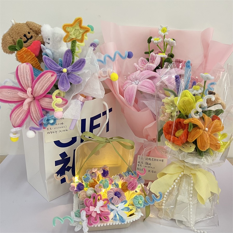 学生巧妙地运用扭扭棒柔软、易塑形的特性,经过整体配色、制作花朵叶子及配饰,最后创意组装,塑造出花朵的生机。作品可以运用在课堂教学、教室装饰、节日活动中,用途广泛。