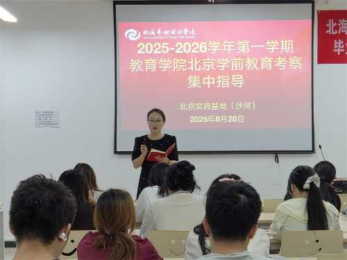 为深化理论与实践结合,提升学前教育专业学生的实践能力与职业认知,近日,教育学院2022级学前教育专业全体学生在教育学院教学副院长蒙剑英,北京实践基地副主任严腾、班主任雷蕊带领下,前往北京市昌平区巩华北科幼儿园、北科婴幼学苑开展《北京学前教育考察》课程实践活动。