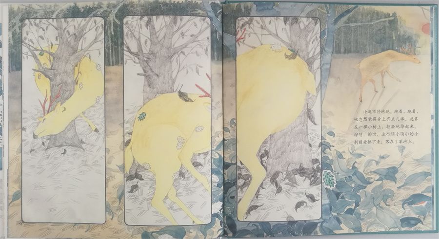 我校获奖作品的故事主线与内容是根据科普童话《小刺猬与小伞兵》的典型情节和表现元素创作而成。张业磊老师在创作中融入植物生长与传播相关知识普及的同时,借助图文叙事的优势扩展知识容量,拓宽受众认知视角。在图画创作的构图中,张业磊老师运用不同景别、视角、色调等营造整体的叙事节奏,表现故事情节的戏剧性,增强画面的故事性与趣味性。